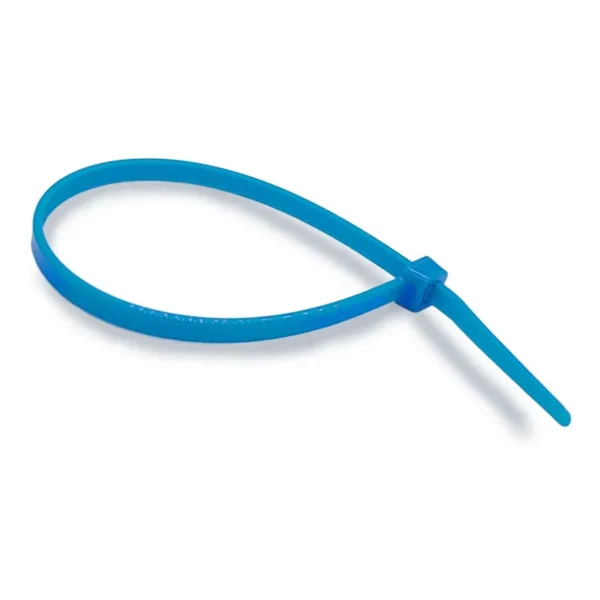 Kabelbinder er udført i stærk kvalitet i blå nylon (polyamid & halogenfri i kvalitet 6.6)